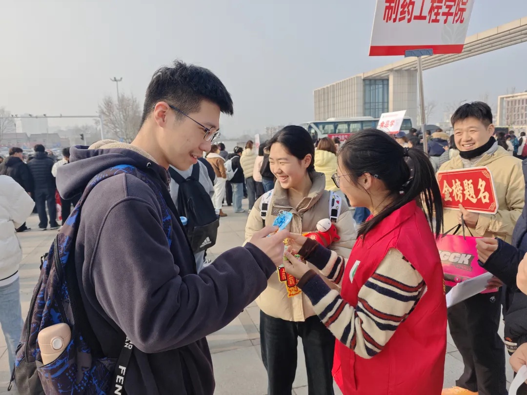 3月21日,2026年江苏省“专转本”考试如期举行。制药工程学院164名大三学子怀揣梦想奔赴考场。清晨,由学院辅导员、大三班主任代表组成的送考队伍已守候在考点外,为考生加油鼓劲。