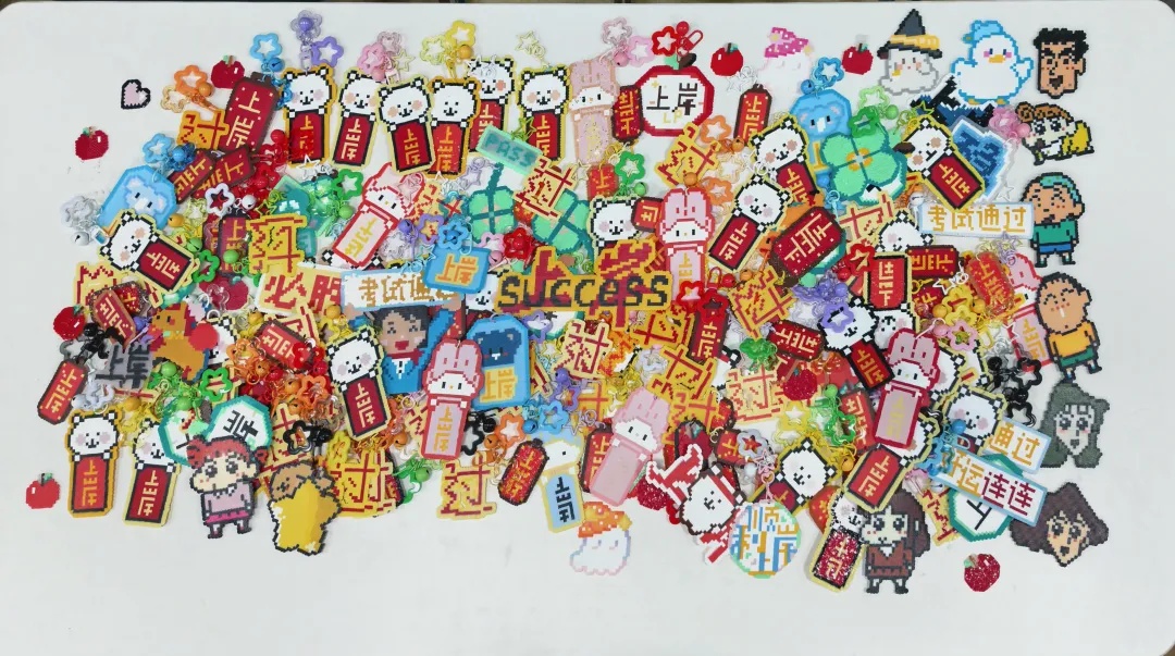 “‘拼豆’虽小,但每颗豆子都需要细心拼贴,就像备考的每一天。希望学长学姐们的努力都能在此刻开花结果。”一位参与制作的在校生说道。