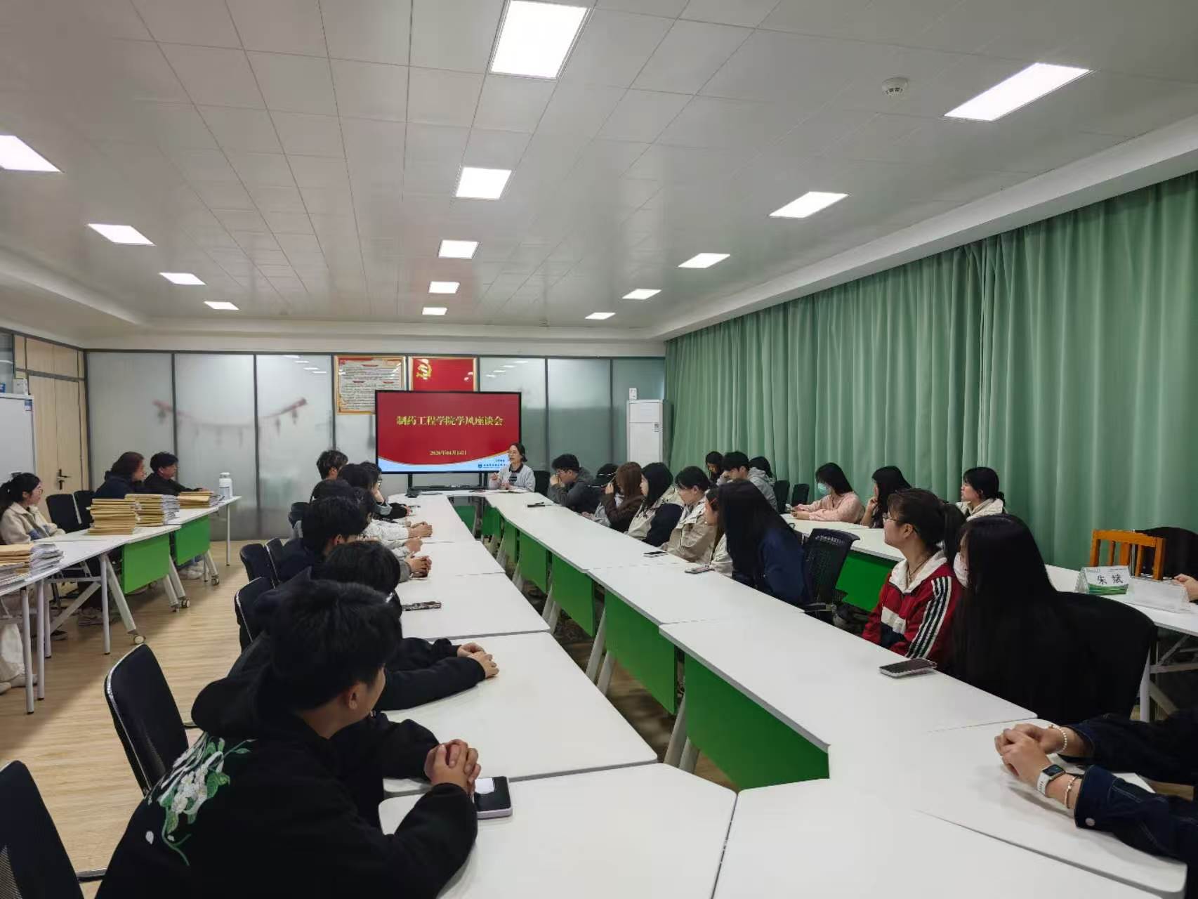 4月14日,制药工程学院在学院会议室召开学风建设座谈会。副院长陈琪、教务员丁颖与全体在校班级的班长、学习委员等学生代表围坐一堂,围绕学风建设展开交流。